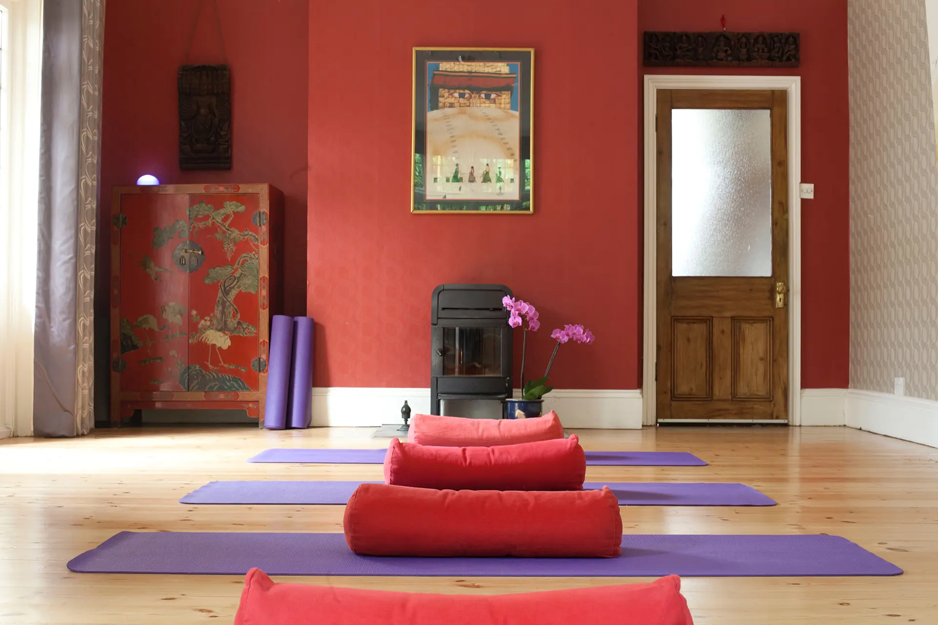 Since 2003, I’ve been teaching from my home yoga studio, which has evolved into a sanctuary of peace and positive energy. The room’s ambience, steeped in years of practice, provides a uniquely comfortable and inviting environment for your yoga journey (read).